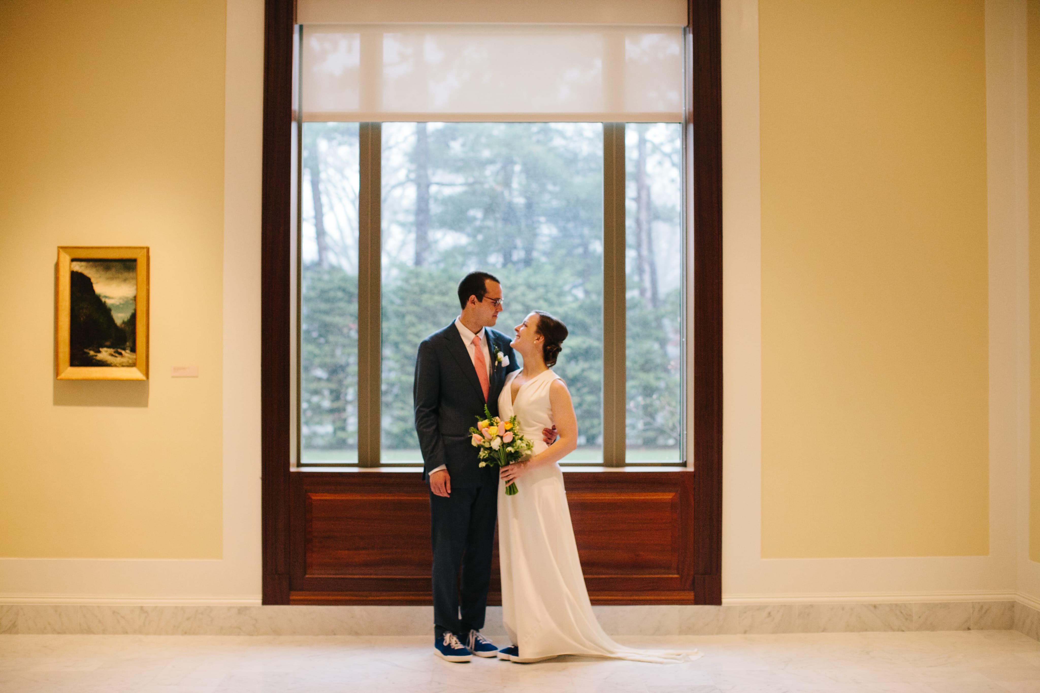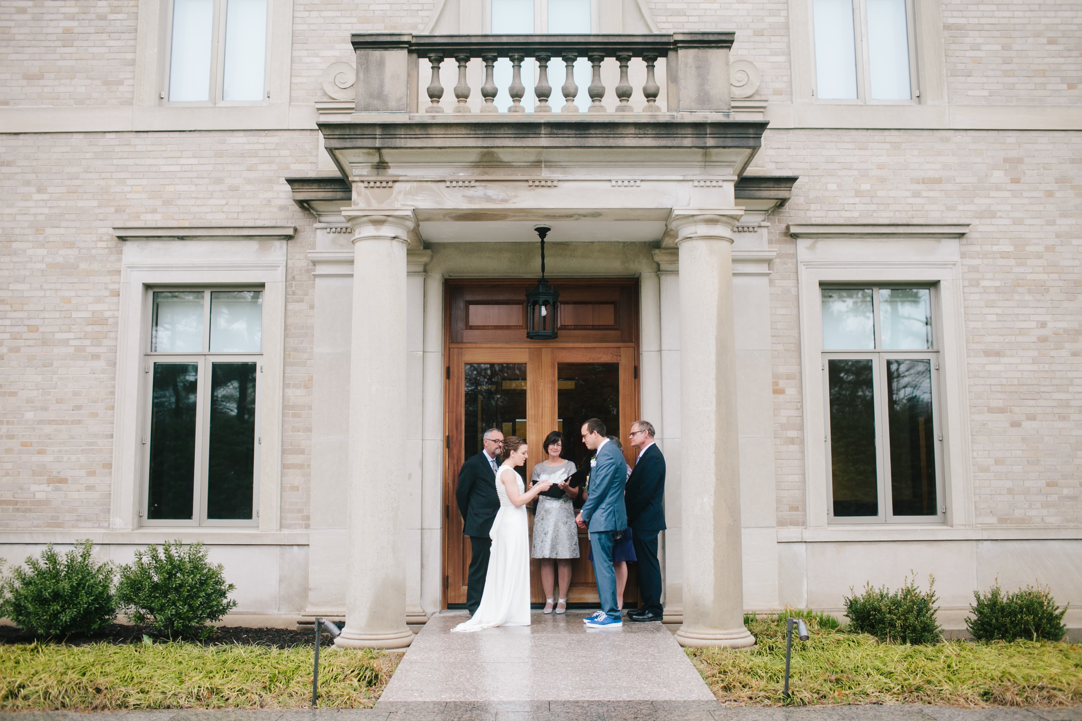 Our largest indoor space, The Hill Family Room and its adjacent gallery are ideal for intimate weddings and can accommodate from 50–80 guests for a seated meal. Combined, the galleries of the first floor can accommodate up to 180 for a reception-style event. Outdoor weddings may be hosted on our green, expansive lawn from May–October and require the use of a tent. The lawn is suited for guest counts up to 180 for a seated meal.