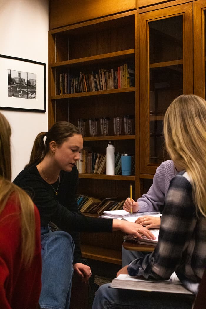 Nadia Capolino '23 (right) and her Ascend co-lead, Olivia Vukelic ‘23, work on plans for their next weekly meeting. Photo by Sophia Miller '23