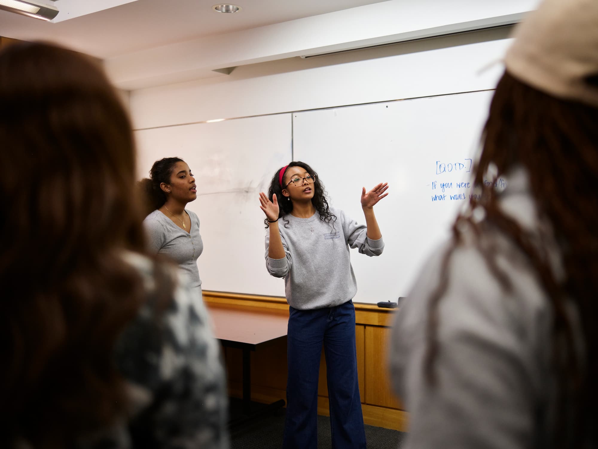 At a rehearsal in April, the 12 BEATS members are sitting in a circle, discussing everything from their upcoming exams to what fruit each person would be. As they move to the front of the room, now standing in a tight circle, Martin leads vocal warm-ups and everyone jokes and giggles between their do re mis. “The best part about being in a creative or cultural group is that people feel like they can be themselves,” she says. “I feel more deeply connected to my peers as a person [rather] than whatever they’re doing professionally."