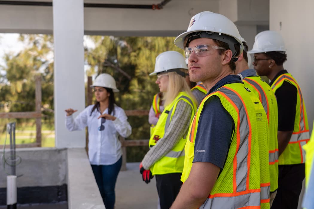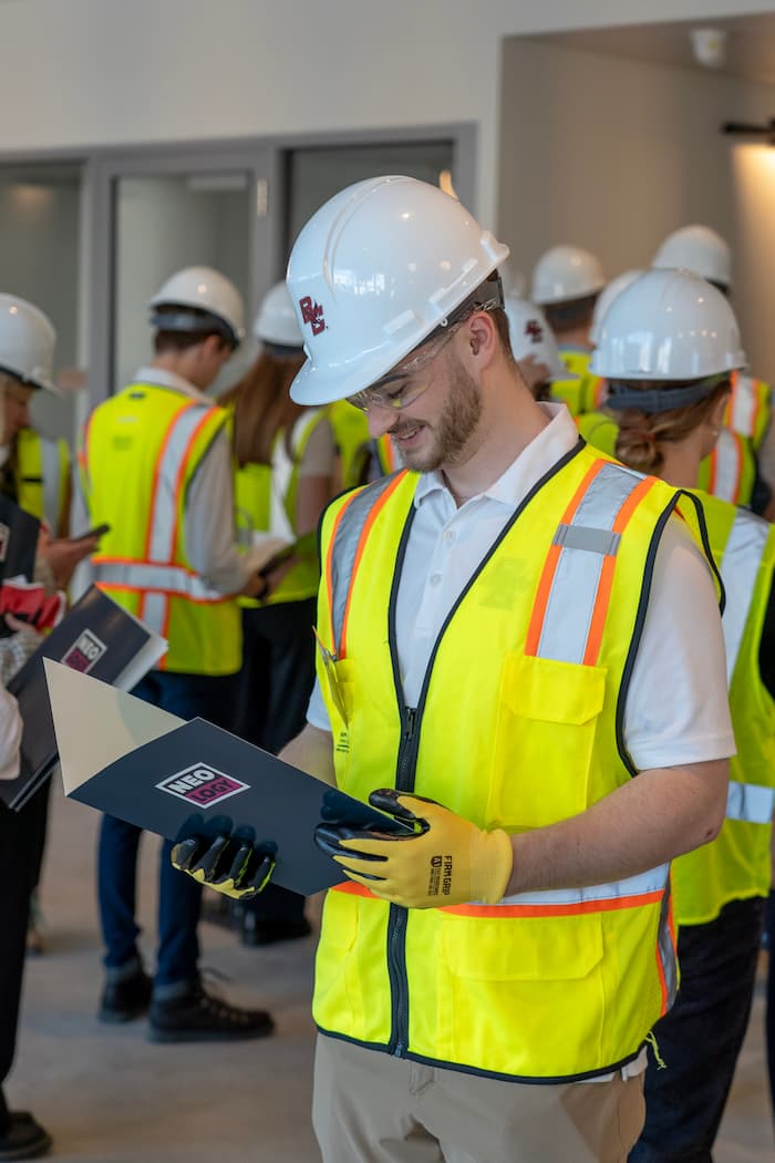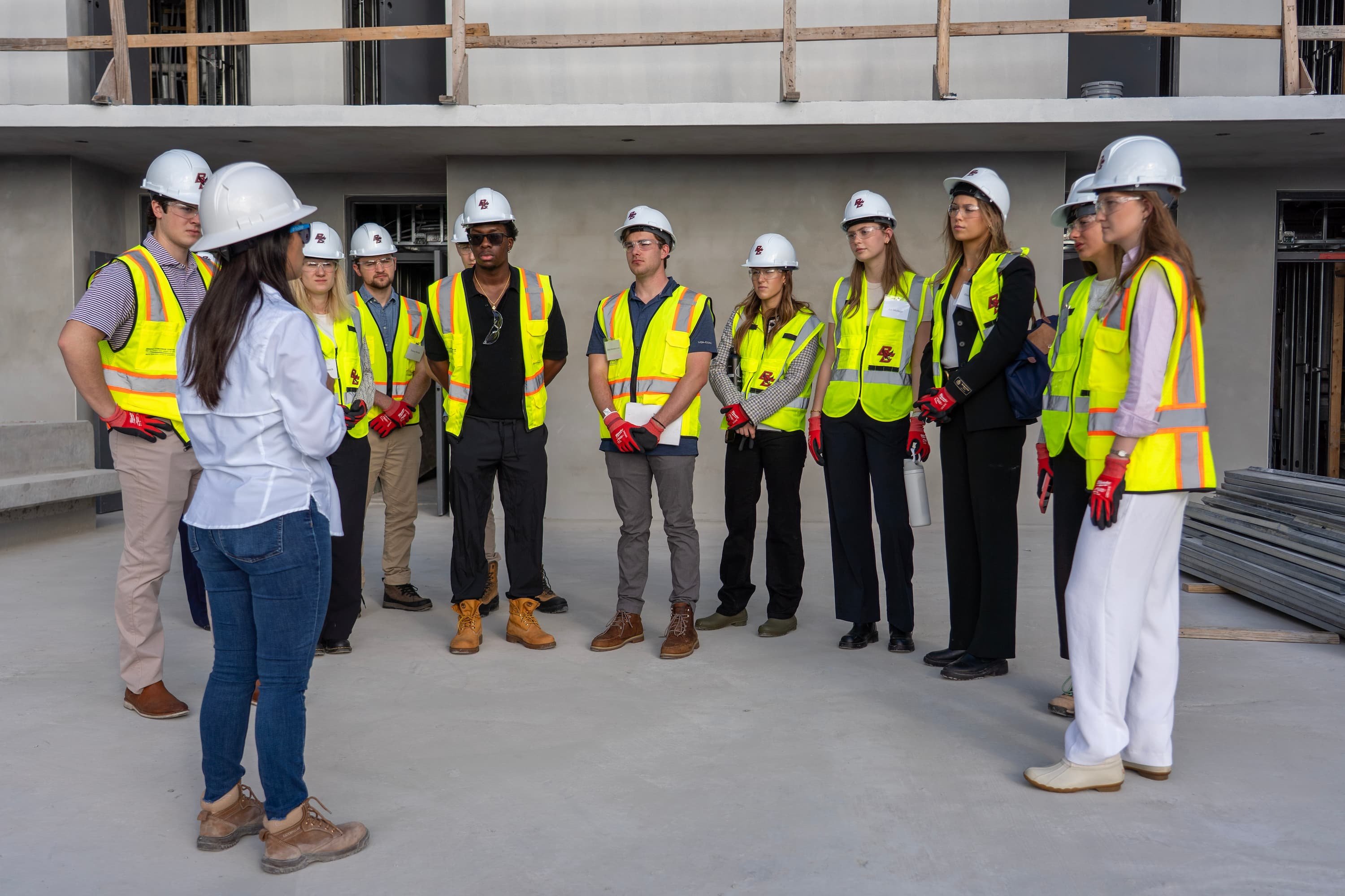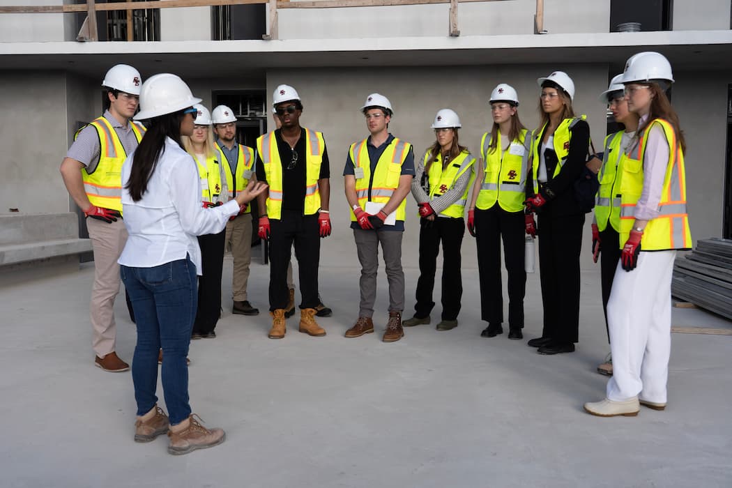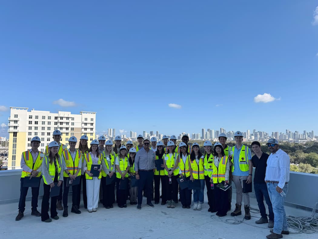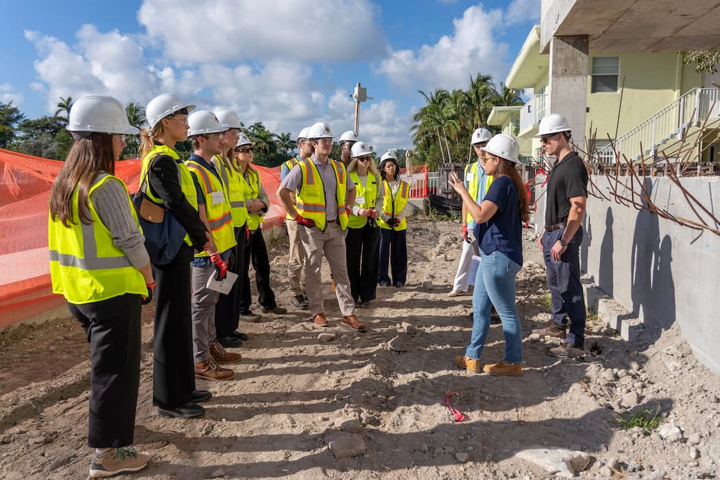 Hoffman '26 and other group members on a site tour of Fourteen Allapattah Residences by developer Neology Life.