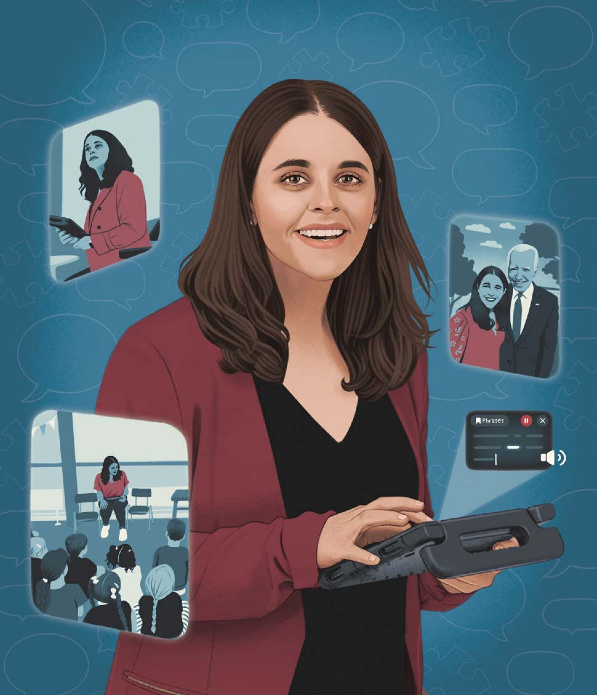 Ten years later, Zimmerman has become a powerful champion for disability rights and education policy reform. Her motivation is nothing less than to change the world’s perception and treatment of people with disabilities. In 2022, President Biden appointed her to the President’s Committee for People with Intellectual Disabilities. She has shared her story on CBS Mornings, and she’s the subject of the 2021 documentary This Is Not About Me. In addition to her full-time job as head of project strategy at the education nonprofit The Nora Project, Zimmerman is also chair of the board of directors of CommunicationFIRST, a nonprofit that advocates for the civil rights of the millions of Americans who have difficulty speaking.