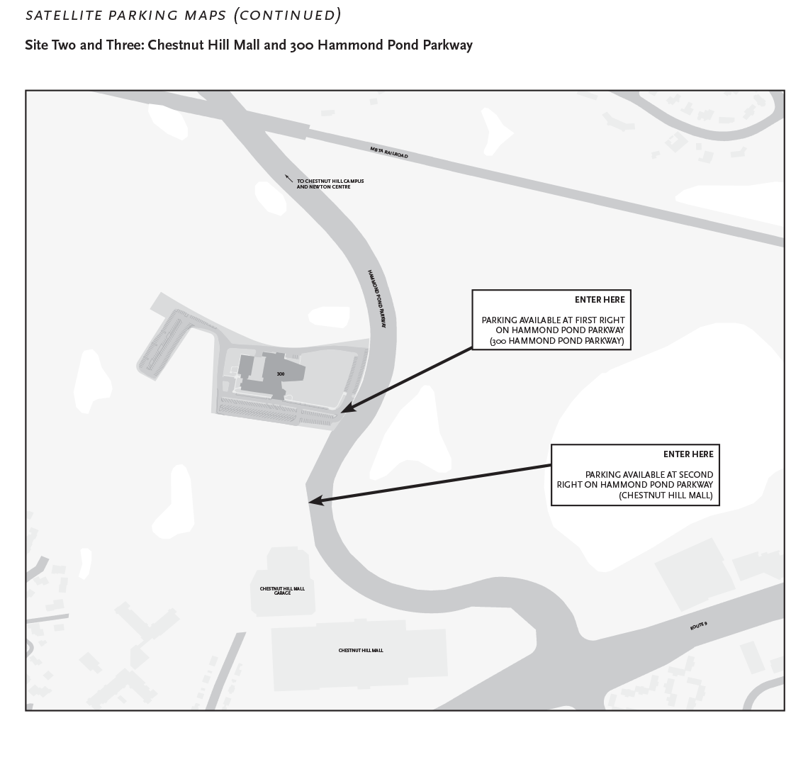 Hammond Pond Parkway and Chestnut Hill Mall Satellite Parking Map
